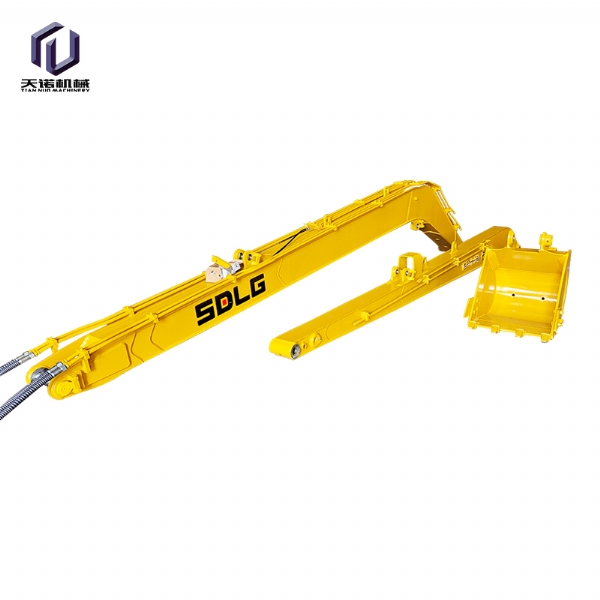 40-50吨位发掘机加长臂,可加长到26米,其设置装备摆设为:挖斗1个、铲斗油缸1支、销轴6支、 高压软൲管4条、黄油管3条、连杆总成1套、运输连杆1套、加长大臂(14米)、𝔍加长小臂(12米)。